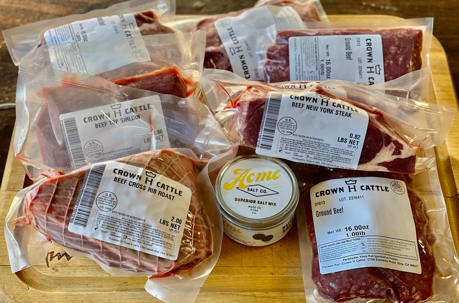 Meat is vacuum packed to maximize freezer space. Requires 5-6 cubic feet of freezer space. Free delivery (enter code Ship Free) within 100 mile delivery area. Sometimes we deliver to Bay Area and PDX, inquire via email.